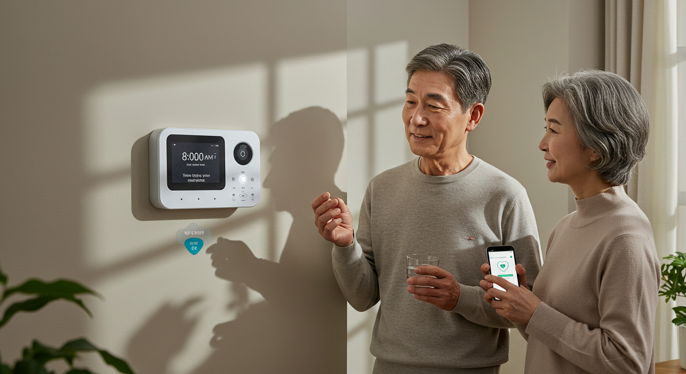 정해진 시간에 맞춰 음성으로 알려주고, 약을 드셨는지 여부까지 자동으로 체크해주죠.