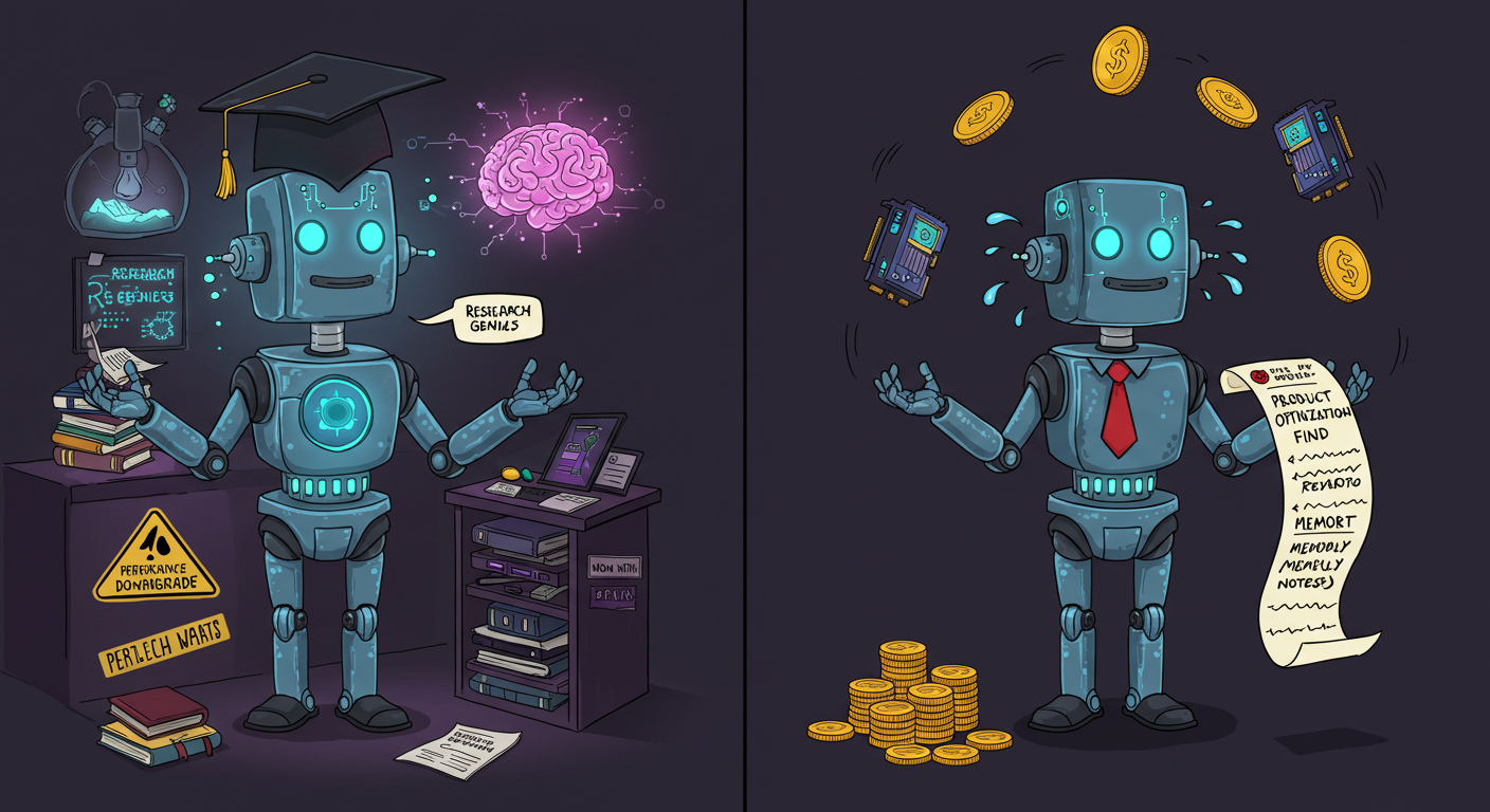 수십억 개의 파라미터를 가진 모델을 구동하려면 GPU 자원, 인프라, API 처리량 등 모든 게 돈이에요. 이 비용을 줄이기 위해 기업들은 슬슬 '제품 최적화'라는 이름으로 성능 하락을 감수한 선택을 하기 시작합니다.