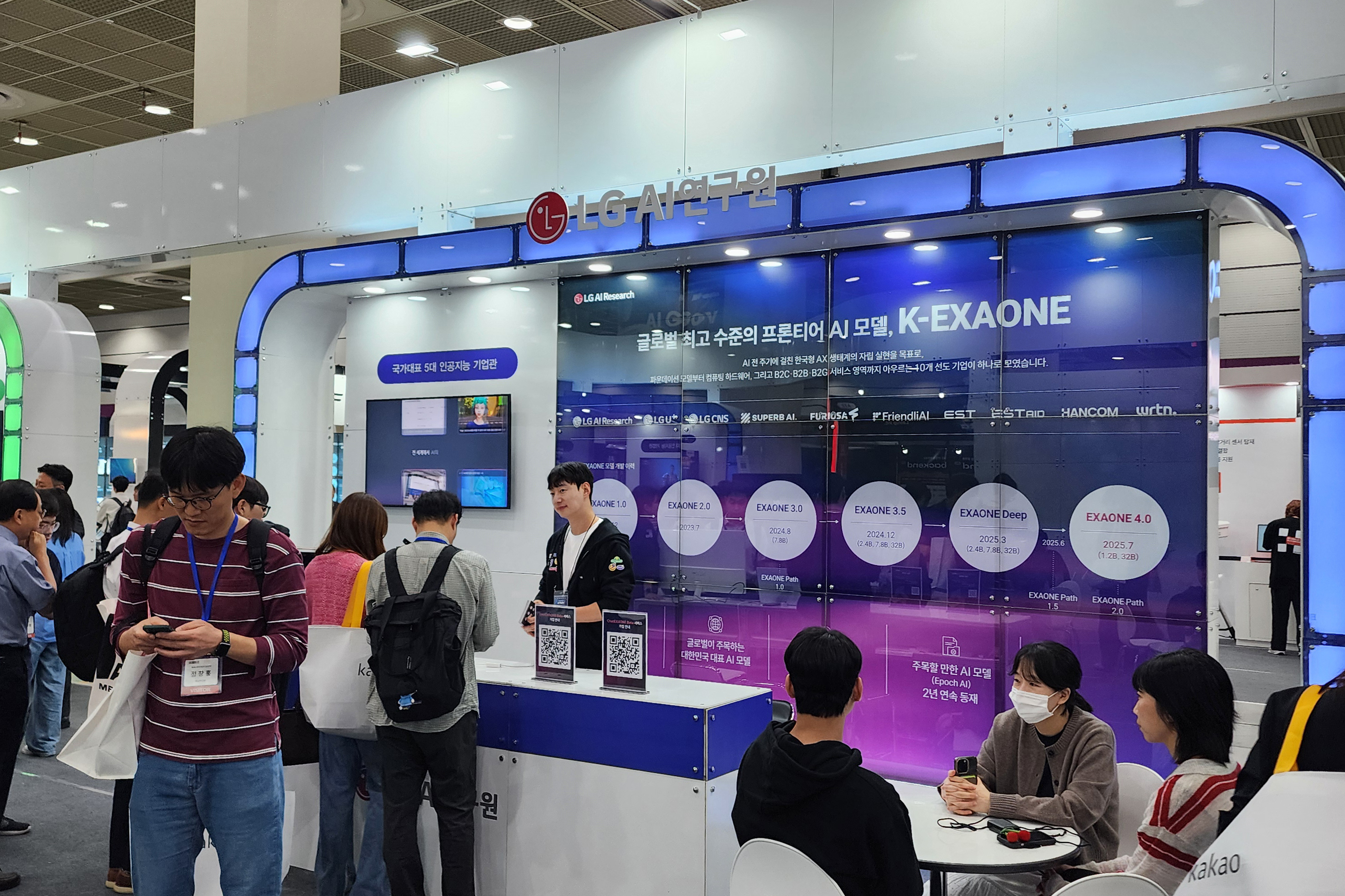 정부가 2천억 원 이상을 투입한 ‘독자 AI 파운데이션 모델’ 프로젝트의 주역들인 네이버클라우드, LG AI연구원, SK텔레콤, 업스테이지, NC AI 다섯 개 기업이 함께 만든 부스는 말 그대로 국산 AI 기술력의 최전선을 보여주는 자리였습니다. |