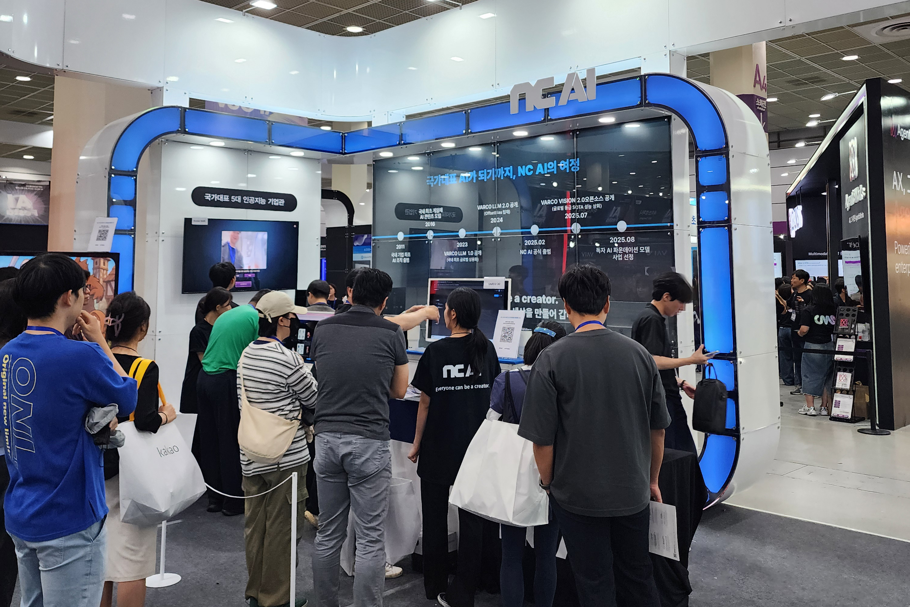 게임 회사로 익숙한 NC소프트는 이번 전시에서 자체 AI 브랜드인 ‘NC AI’를 통해 콘텐츠 제작형 AI 기술력을 적극적으로 보여줬습니다.