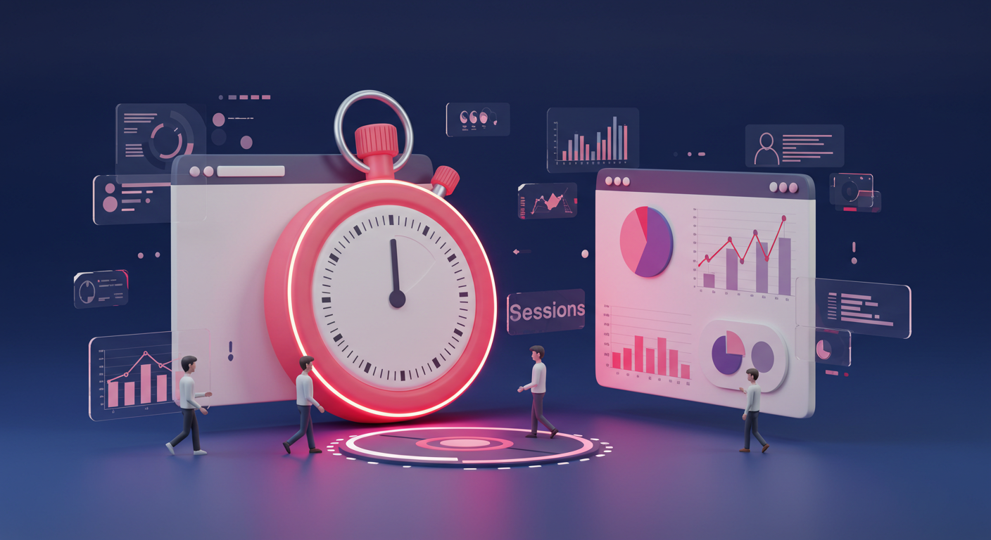 세션은 사용자가 웹사이트나 앱에 들어와서 머무르는 활동 구간을 뜻해요.
