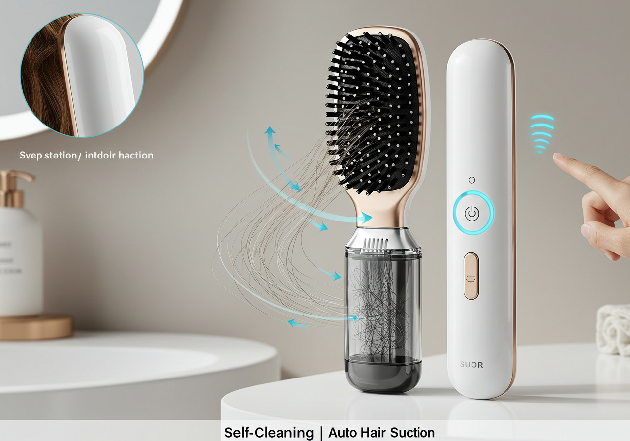 클리닝 헤어 브러시는 그런 일상 속 귀찮음을 터치 한 번으로 해결해주는 스마트한 뷰티 디바이스예요. 브러시 핸들 안에 내장된 자동 흡입 시스템이 브러싱 후 남은 머리카락을 자동으로 쓱 빨아들이니까 손으로 잡아당기거나 빗을 털어낼 필요 없이, 항상 깔끔하게 유지할 수 있어요.