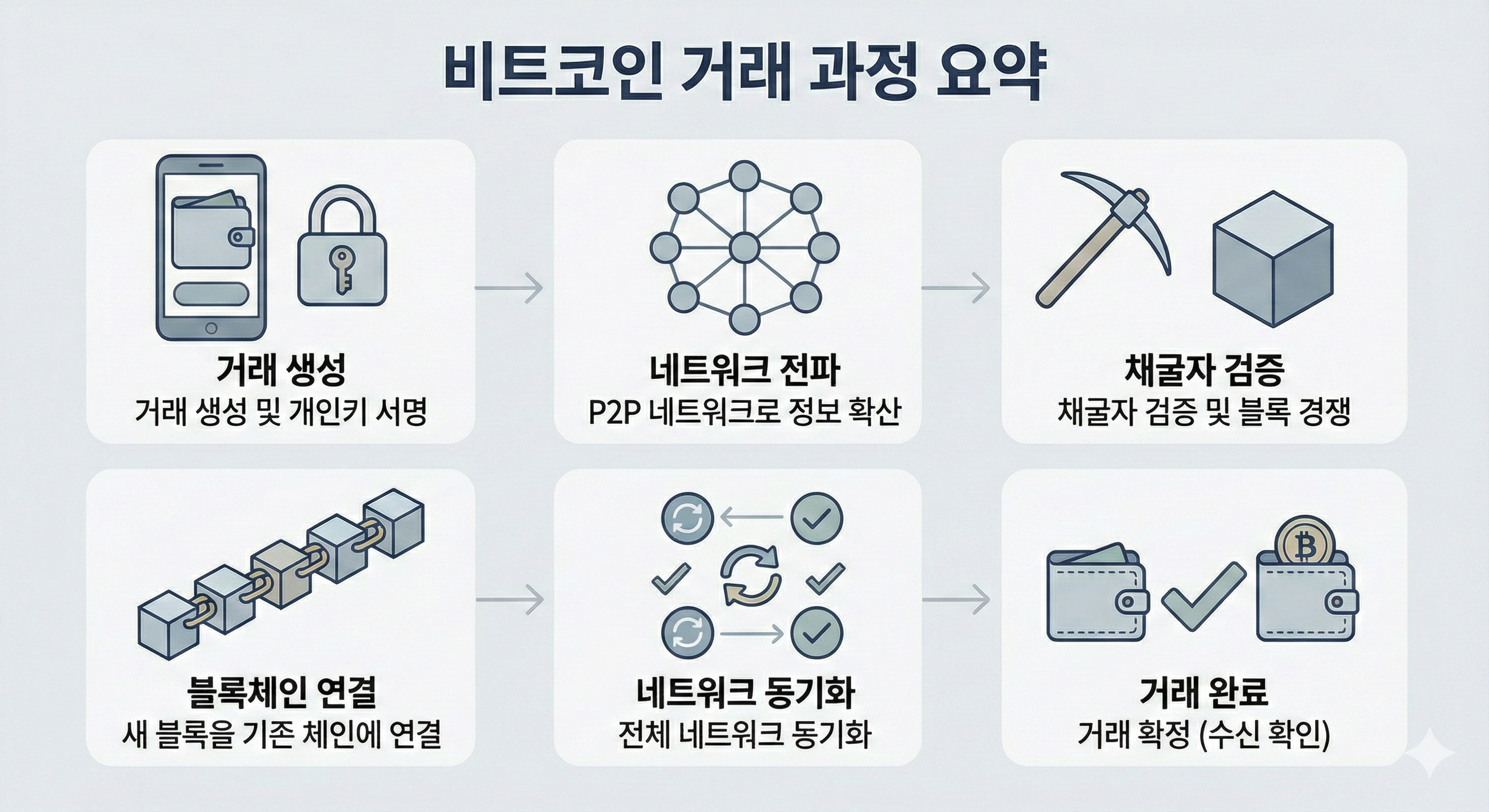 프롬프트: “비트코인의 거래 과정을 요점만 정리해서 인포그래픽 형식 한 장의 이미지로 시각화해주세요.”