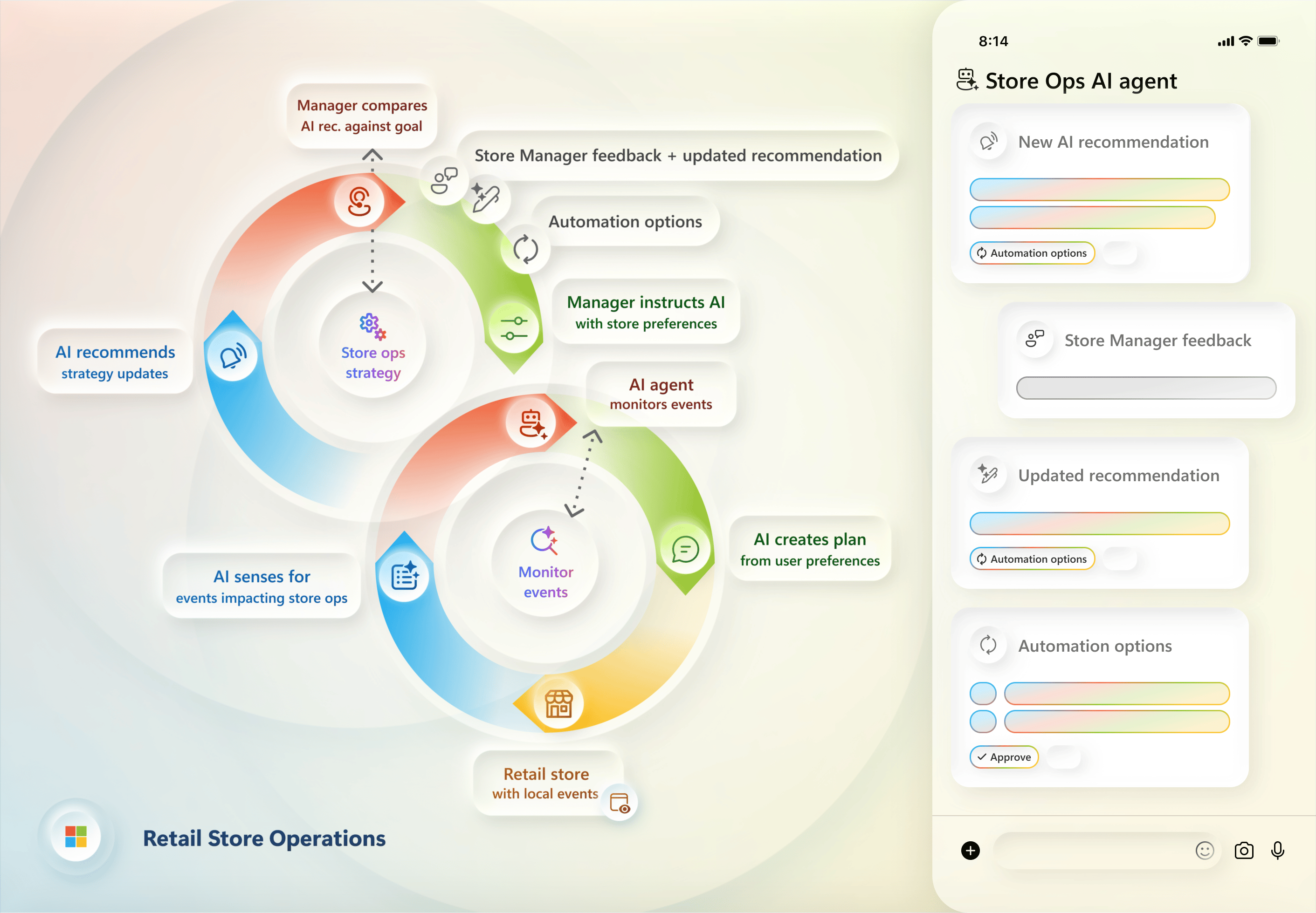 - 작은 루프 (AI 에이전트): 실시간으로 날씨, 지역 행사 정보를 감지합니다. "내일 폭우가 온다는데요? 우산 재고를 늘려야겠어요."라고 판단하고 점장에게 알림을 띄웁니다.