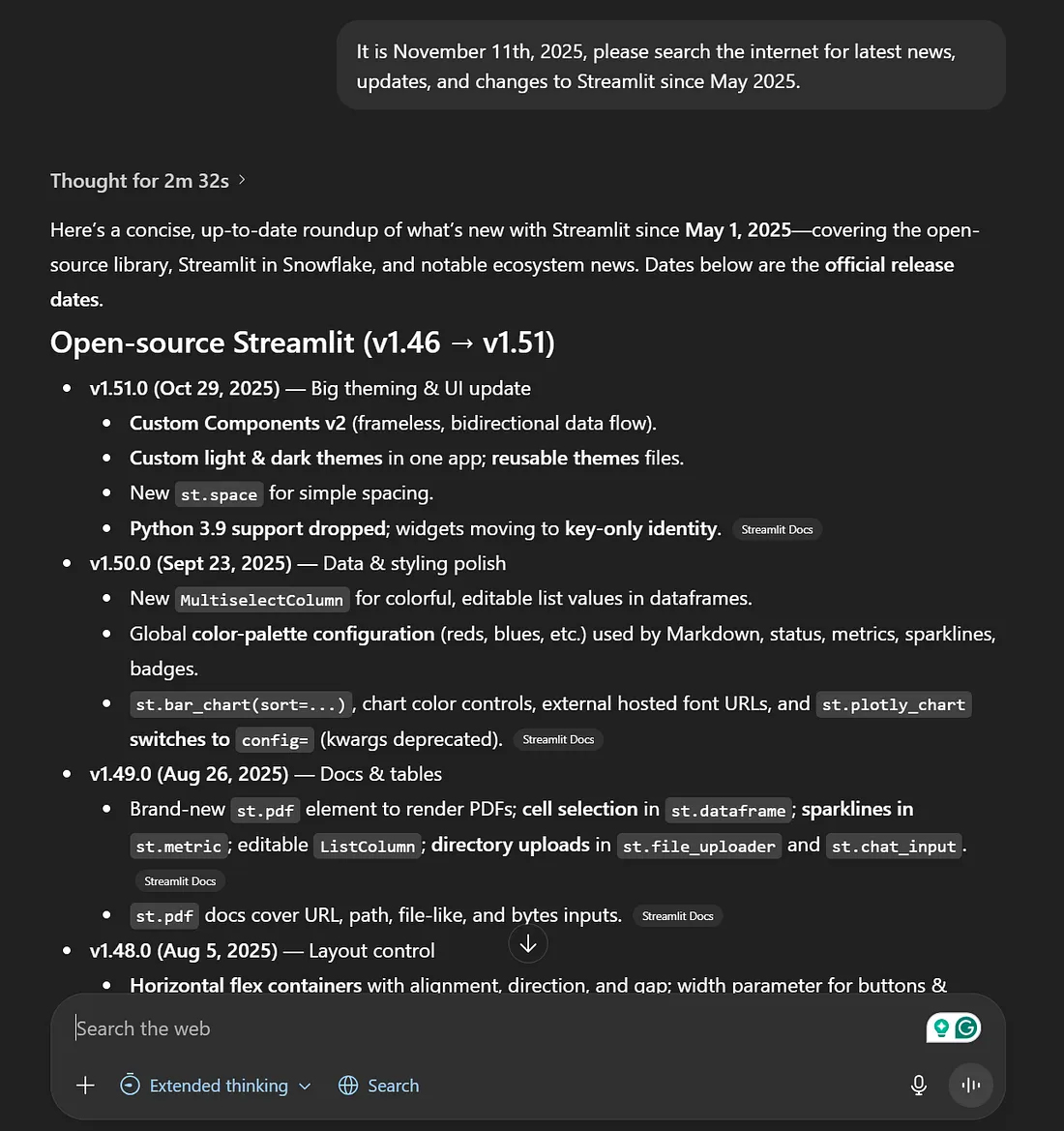 "It is [Current Date], please search the internet for latest news, updates, and changes to [Subject/Tool] since [Past Date]"