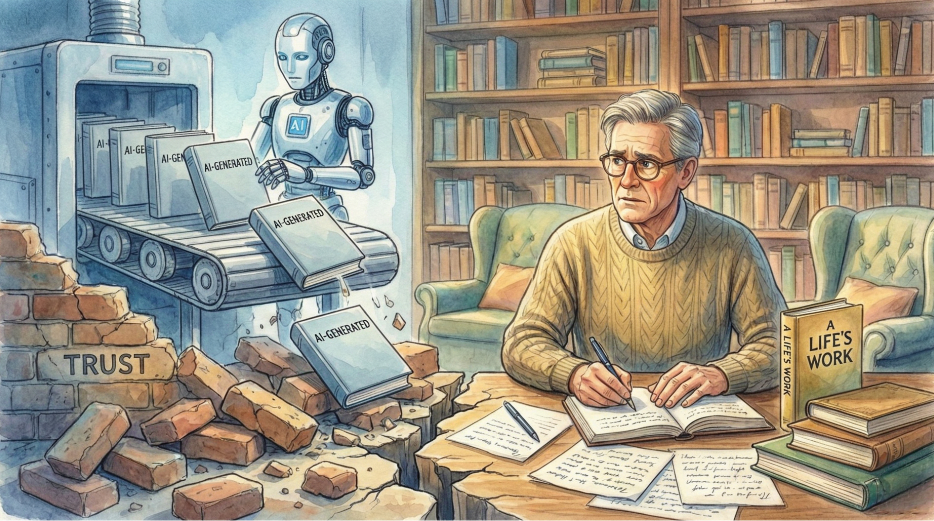 매일 수천 권의 AI 생성 전자책이 쏟아집니다. 사람들은 이걸 보고 "AI가 문학을 망쳤다"고 욕하죠. 하지만 저자는 진짜 문제는 기술이 아니라 '저자에 대한 신뢰의 붕괴'라고 꼬집습니다.