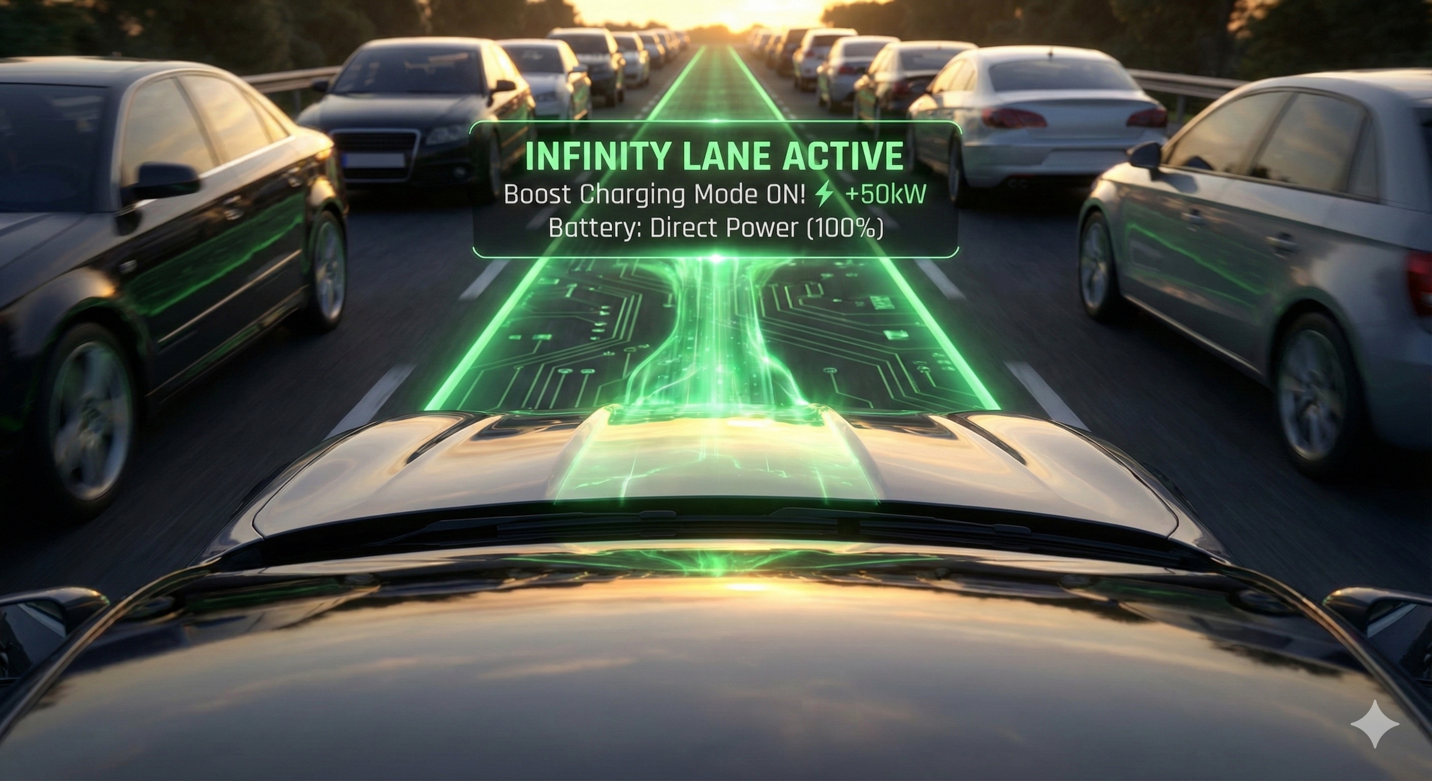 그동안 교통 체증은 시간과 연료의 낭비였습니다. 하지만 인피니티 레인 위에서는 다릅니다.