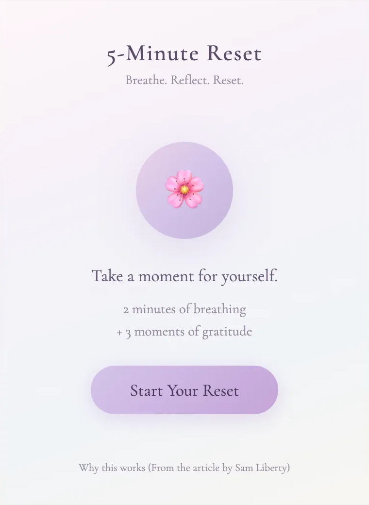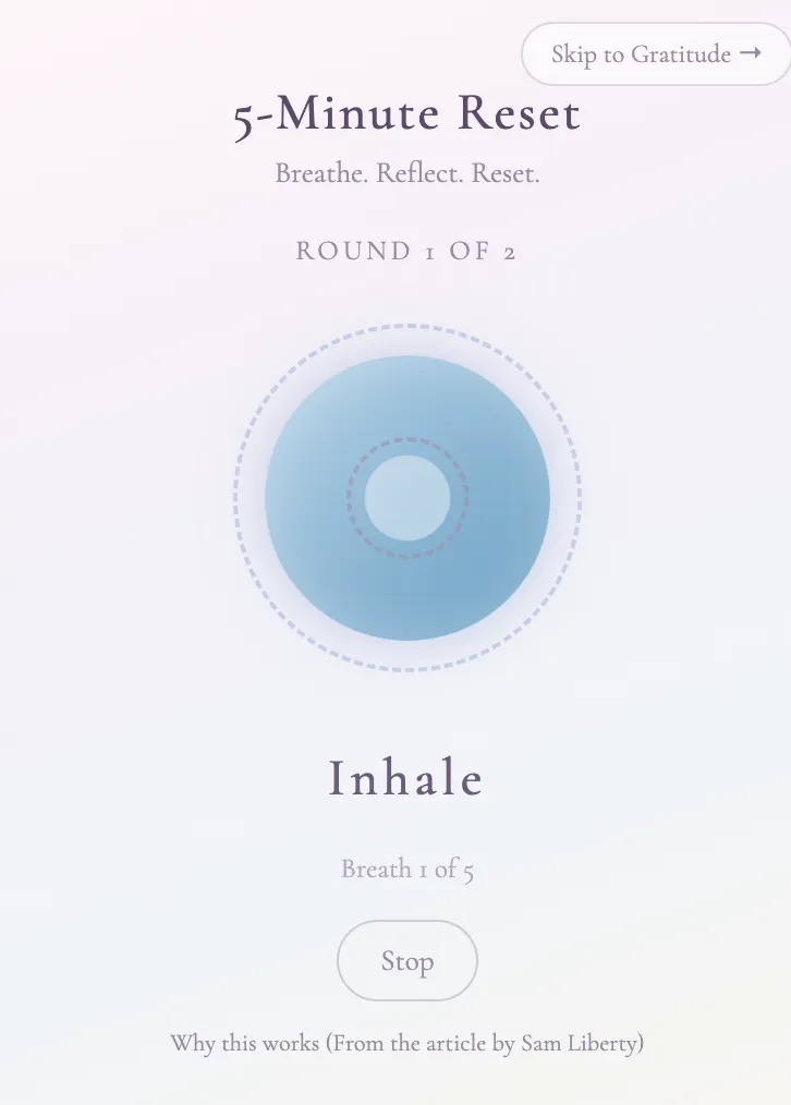 브라우저 버튼 한 번 클릭. 2분 호흡 + 3가지 감사 쓰기 = 끝.